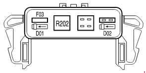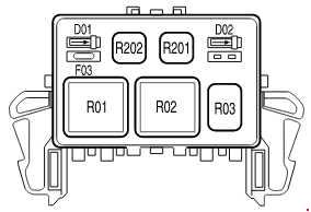 | R03 | ½ ISO Relay | Daytime Running Lamps (DRL) high beam disable |