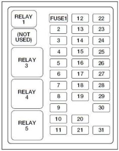 | 32 | 1999: Gasoline: Two Speed Fuel Pump 2000-2001: Gasoline: A/C CASS 1999-2001: Diesel: Injector Driver Module Power |