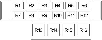 | R2 | ’04-’07: Trailer tow stop lamp relay ’08-’10: Trailer tow marker lamp relay |