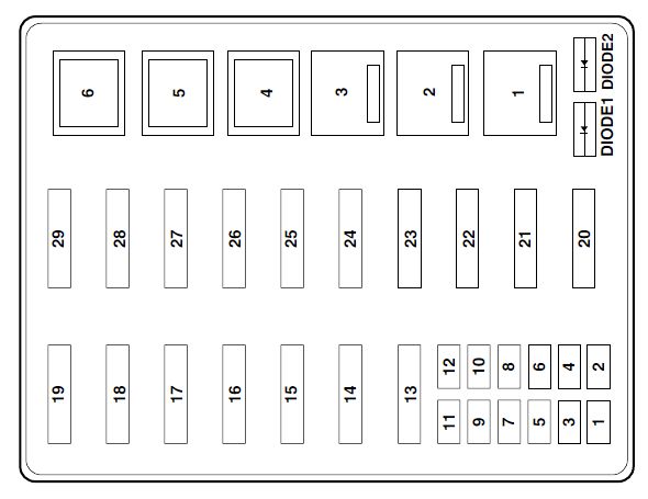 | 5 | 15* | Powertrain Control Module Power, FuelPump Relay Coil, Fuel Injectors, Mass AirFlow Sensor with IAT, A/C System Relay Coil |