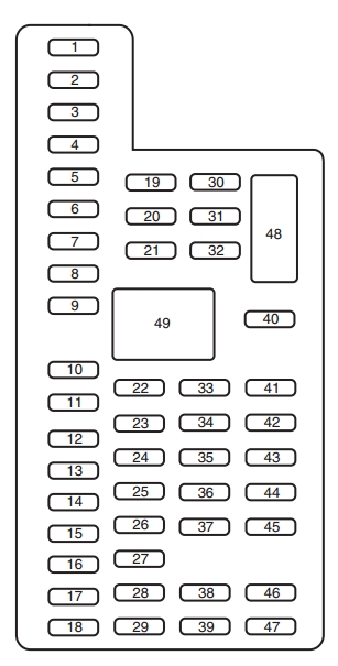 | 48 | 30A Circuit Breaker | Front passenger power window, Rear power windows |