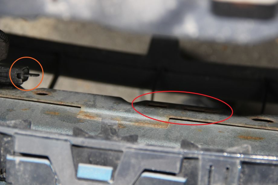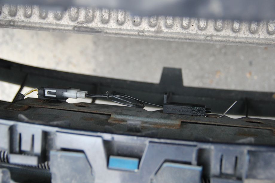 Sensor is located on the front crash member, just behind the bumper. First step to fit our outside temp sensor is to open the hood and disassemble front grille.