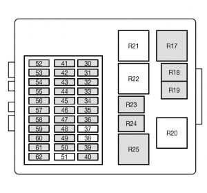 | 63 | 20 | Central locking (on the rear side of the fuse box) |