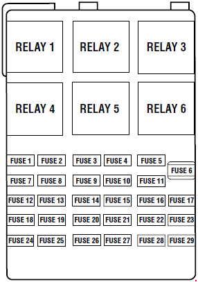 | 20 | 15 | Ignition coil, Intake Air Control (IAC) valve, Fuel injectors, Mass Air Flow (MAF) sensor, Fuel pump relay coil, Intake manifold runner control, High-speed cooling fan relay coil, Low-speed cooling fan relay coil, PCM, Passive anti-theft receiver (as of 2001), Powertrain Control Module (up to 2000) |