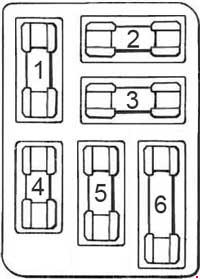 | 6 | 15 | Cigar Lighter, Ignition Switch, Generator Regulator, Lighting Switch, Starter Relay |