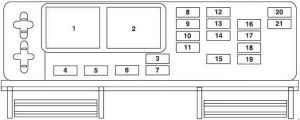 | 19 | 5 | Powertrain Control Module (PCM) relays, Passive Anti-Theft System (PATS), Instrument cluster airbag warning lamp (2007-2009) |