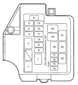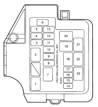 | 13 | 40 | Air bag system, air conditioning, air condidtioning and heater, anti-lock brake system, audio system, backup lamps, cooling fan, daytime running lights, emission and fuel control system, front wiper and washer, instrument cluster, keyless entry system, moon roof, power door lock switch illumination, power mittots, power windows, power windows switch illumination, rear window defroster, rear window defroster indicator, shiift-lock system, speed control system, starting system, turn signal |