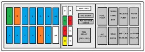 | 18 | Front wiper | 25 | Wiper relays, wiper, washer pump |