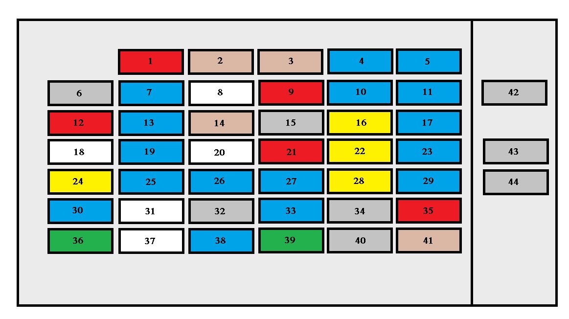 | 33 | ABS | 15 | ABS lamp relay, back-up lamps, GEM, RAP module, day, night mirror |