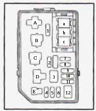 Geo Prizm – fuse box diagram – engine compartment relay box