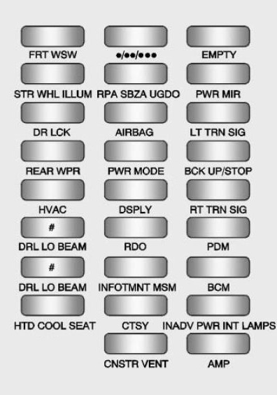 | DRL/LO BEAM | Daytime Running Lamps Relay/Low Beam Headlamps Relay |