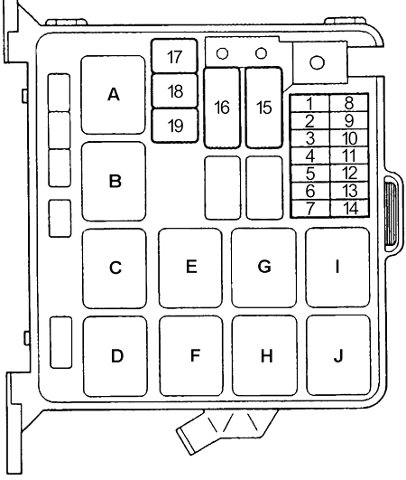 | 15 | 15 | Back-Up Light, Turn Signal, Flasher, Cruise Control Unit (A/T) Power Window Relay, Mirror Heater |