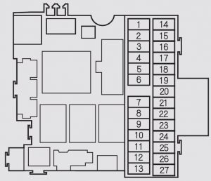 Pontiac Bonneville (2003 – 2004) – fuse box diagram Year of production: 2003, 2004 Engine Compartment Fuse Block The engine compartment fuse block is located in the front of the engine compartment on the passenger’s […]