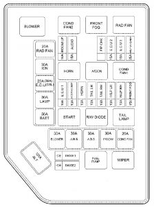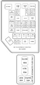 | FUSE | ECU #1 | 10 | Radiator fan, Condenser fan, ECM, Oxygen sensor, Purge control valve, SMATRA, Glow plug relay, Heater relay, Stop lamp switch |