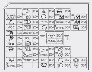 Cadillac Seville (2004) – fuse box diagram Year of production: 2004 Underhood Fuse Block The underhood fuse block is located in the front of the engine compartment between the windshield washer fluid reservoir and the power steering […]