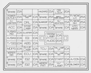 | B+1 | 50 | I/P Junction Box (Power Connector Fuse : ROOM LP 1, AUDIO, Fuse : FOG LP FRT, ROOM LP 2, STOP LP, Relay : Tail Lamp) | |