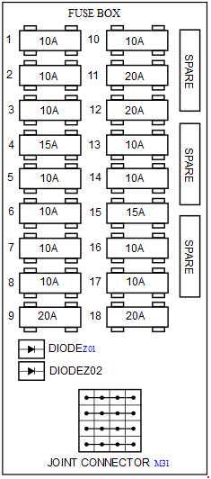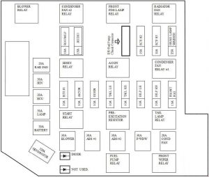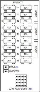 Year of production: 2006 Engine compartment fuse block The engine compartment fuse block is located on the driver side of the engine compartment. Fuses Usage DRL Daylight Running Lamps (If Equipped) AUX PWR 1 Accessory […]