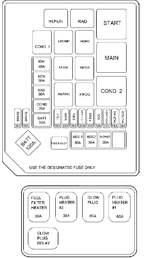 Hyundai Elantra – fuse box – engine compartment (diesel engine)