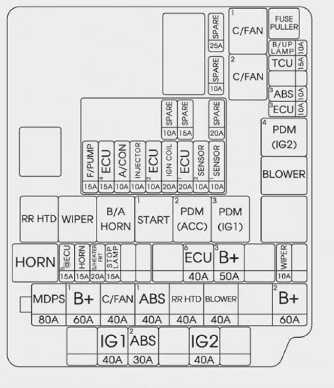 | B+2 | 60 | Smart Junction Box(Turn Signal Lamp Sound Relay, ARISU 2 (4CH), IPS (1CH), IPS (2CH), FUSE – P/SEAT DRV, SUNROOF) | |