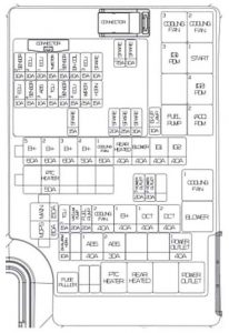 | SENS0R2 | 10A | Purge Control Solenoid Valve, Oil Control Valve #1/#2, Variable Intake Solenoid Valve, E/R Junction Block (Cooling Fan2 Relay, Cooling Fan3 Relay) |