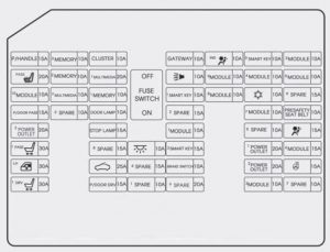 LKAS Module, Steering Tilt & Telescopic Module, ECS Unit, Crash Pad Switch, Tire Pressure Monitoring Module, Smart Parking Assist Control Module, Console Switch LH/RH, Blind Spot Detection Radar LH/RH Electric Parking Brake Switch, Rear Parking Assist Sensor LH/RH, Rear Parking Assist Sensor (Center)