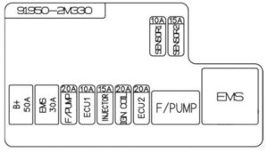 | SENSOR 2 (G6DJ) | 15A | ECM, Oil Control Valve #1/#2/#3/#4, Purge Control Solenoid Valve, Immobilizer Module, Canister Close Valve |