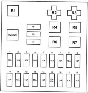 | R7 | Except EC: Front fog lamp relay Only EC: Not Used |