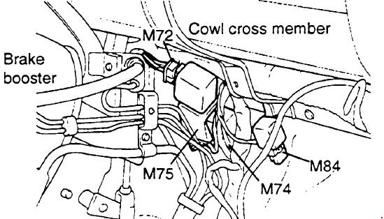 With ABS: ABS modulator Without ABS: Fuses No. 4,5 |