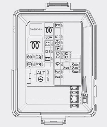 KIA Quoris (from 2012) – fuse box diagram Year of production: 2012, 2013, 2014, 2015, 2016, 2017 Also called: Kia K900 (United States and Canada) Instrument panel fuse panel Inside the fuse/relay panel covers, you can find […]
