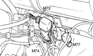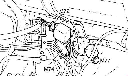 Wiper intermittent relay (M74), Relay with diode (M77), Defoqqer relay (M72)