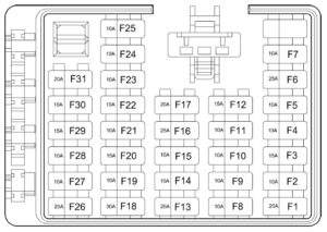 | F25 | 10 | Back-up lamps, TCM, Vehicle speed secsor, ETS control module, Ignition failure sensor |