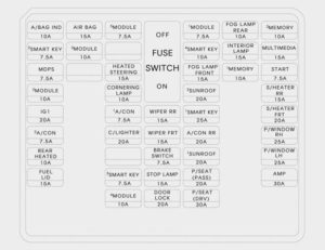 | MODULE 5 | 7,5 | RR_BLOWER, AVM, AC_INVERTER_UNIT,Smart Key Control Module, BCM, Rear Seat Warmer LH/RH,Driver/Passenger Seat Warmer Module, |