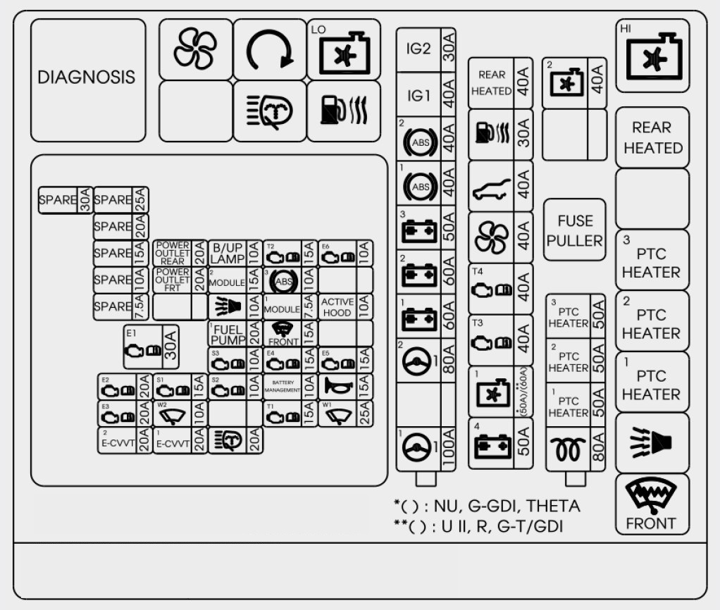 Data Link Connector, A/C Control Module, ATM Shift Lever Ill., A/V & Navigation Head Unit, Electro Chromic Mirror, Head Lamp Leveling Device Actuator LH/RH, Auto Head Lamp Levelring Device Module, Crash Pad Switch, Front Air Ventilation Seat Module, Low DC-DC Converter, Front Seat Warmer Module, Rear Seat Warmer, MTS Module