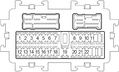 | D | 60 | Accessory Relay (Fuse: “4”, “6”, “7”), Blower Relay (Fuse: “10”, “11”), Fuse: “17”, “18”, “19”, “20”, “21”, “22” |
