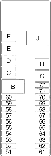 | J | 80 | Ignition Relay (Fuse: “25”, “26”, “28”, “29”, “30”, “31”), Fuse: “2”, “3”, “4”, “5”, “6”, “7” |