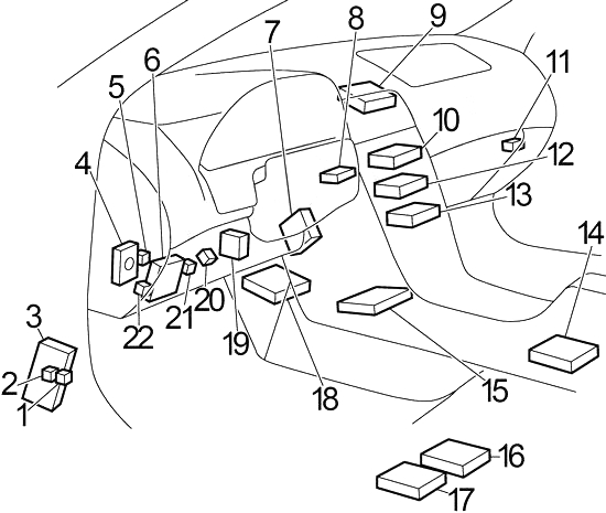 | 21 | 10 | Daytime Light Control Unit, Seat Control Unit, Start Signal |