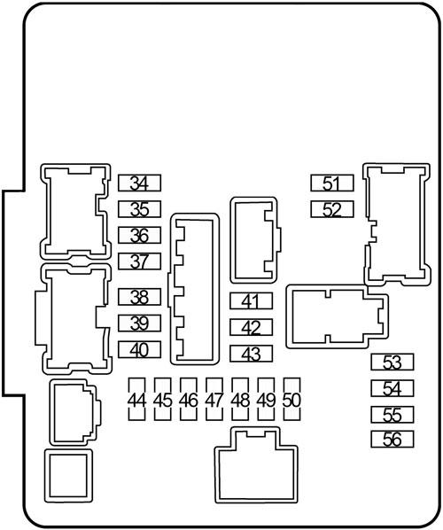 | E | 80 | Engine Control Module Relay (Fuse: “38”, “39”, “40”), Ignition Relay No.1 (Fuse: “44”, “45”, “46”, “47”, “48”, “49”, “50”) Fuse: “53”, “55”, “56” |