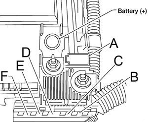 | A | 250 | Generator, Starter, Fuse: “B”, “C”, “D” |