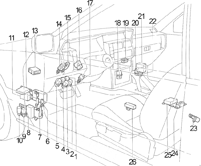 Shift Lock Control System, Automatic Transmission Control Unit, Theft Warning System, ABS, Sonar Suspension System