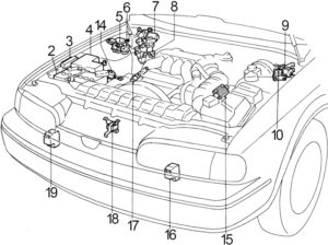 | 4 | 15 | ’95-’96: Heated Oxygen Sensors, Air Fuel Ratio Sensors, Idle Air Control Valve Solenoid Valve, EGR Volume Control Valve |