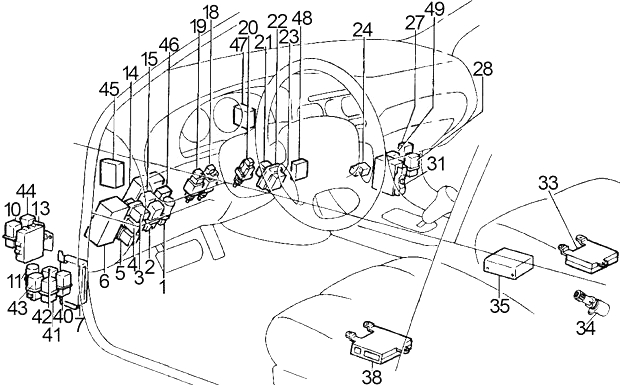 | 13 | 10 | ’94-’96: Daytime Light Cancel Relay, Daytime Light Control Unit, Air Conditioner, Cooling Fan |