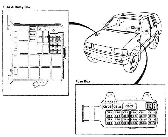| CB-7 | METER | 15 | Gauges, indicators. vehicle speed sensor, seat belt warning, interlock system |
