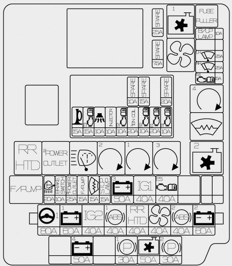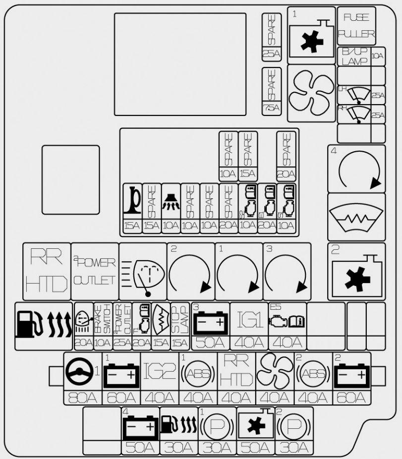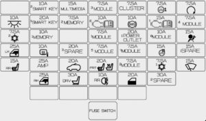 Jeep Grand Cherokee (2016) – fuse box diagram Year of production: 2016 Power distribution center The Power Distribution Center is located in the engine compartment near the battery. Cavity Cartridge fuse Micro fuse Description F03 […]