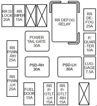 IG2 #2 7.5 DOOR MODULE, REAR A/C CONTROL SWITCH, FRONT AREA MODULE, POWER TAIL GATE MODULE DRIVER POWER SEAT MODULE
