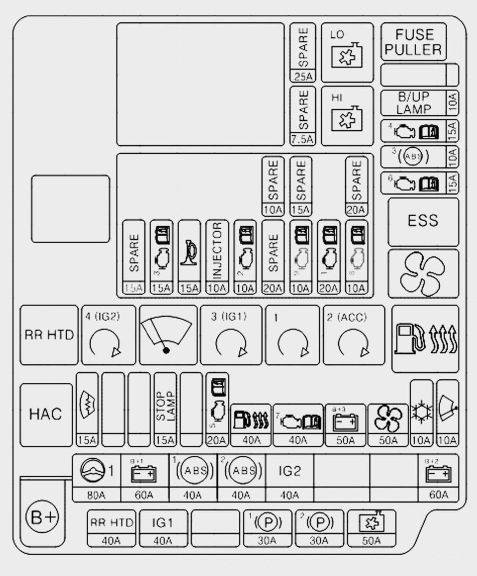 E/R Fuse & Relay Box (ECU4, B/UP LAMP, ABS3, TCU2 FUSE)