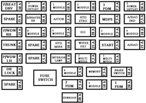 | MODULE 1 | 10 | Smart Key Control Module, BCM, Digital Clock, Audio, A/V & Navigation Head Unit, Power Outside Mirror Switch, DC-DC Converter, MTS Module |