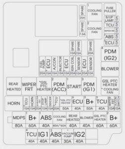 | IG 1 | 20 | W/O Smart Key : E/R Fuse & Relay Box (Fuse – TCU, ECU 3, ABS 3) |