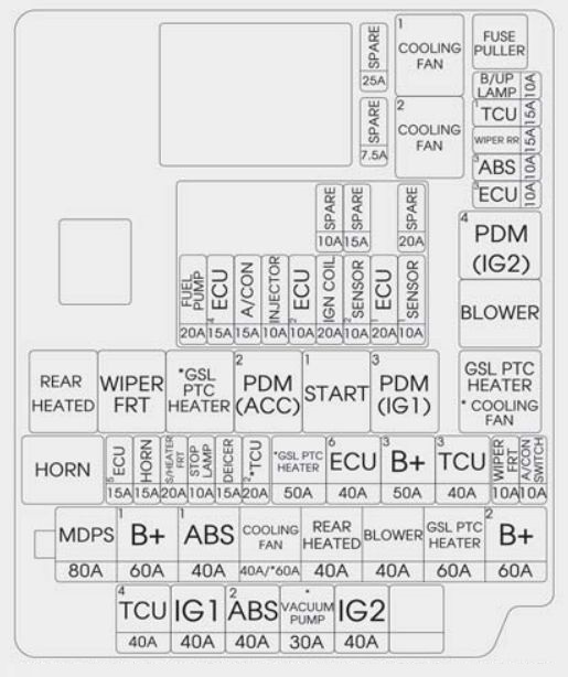 KIA Forte (2017 – 2018) – fuse box diagram