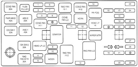 Kia Magentis (2001 – 2005) – fuse box diagram