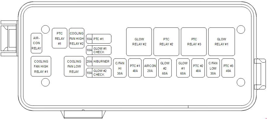 | FUEL HEATER | 30 | Fuel Filter Heater Relay (D4HB) | |